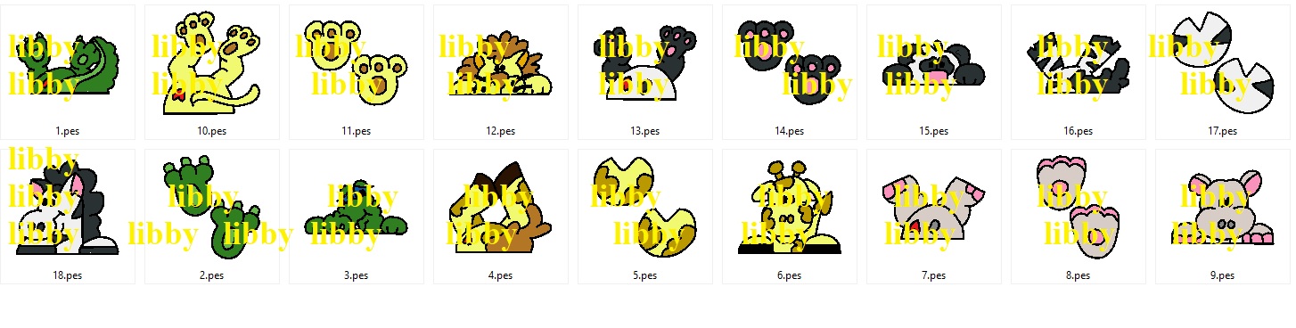 there is 10 in 5x7 hoop, 10 in 4x4 hoop. formats in this folder are pes,hus,jef.